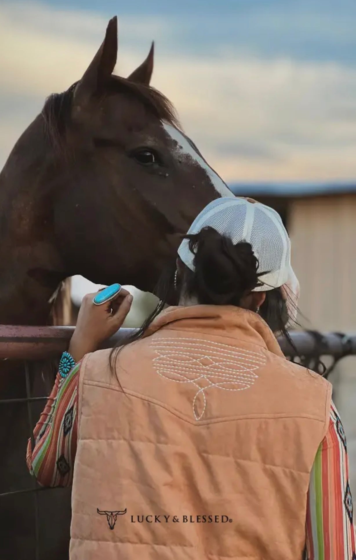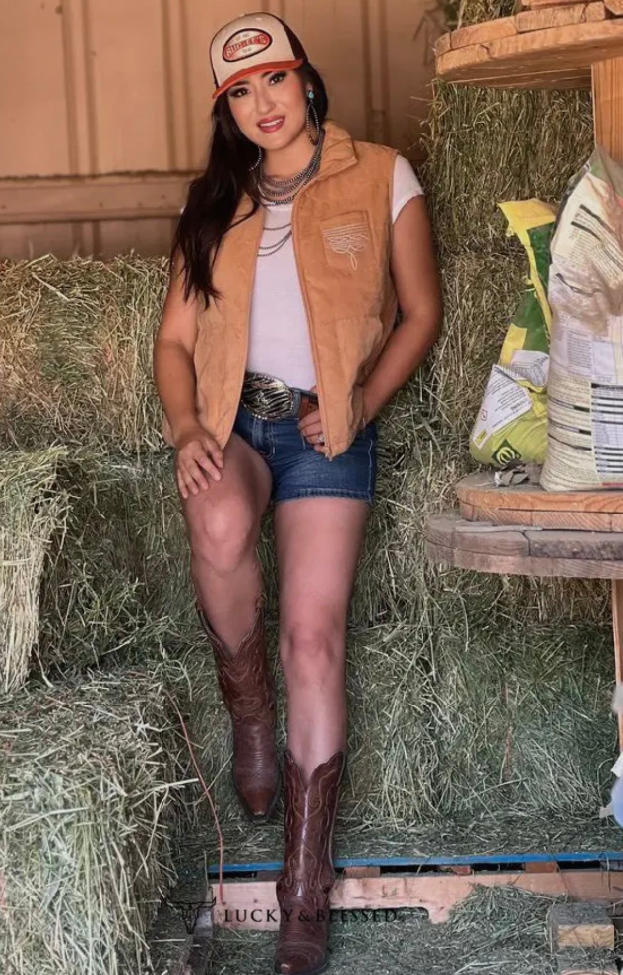 Solid zip up puffer vest with printed lining, boot stitching detail, and side pockets. nfr western rodeo